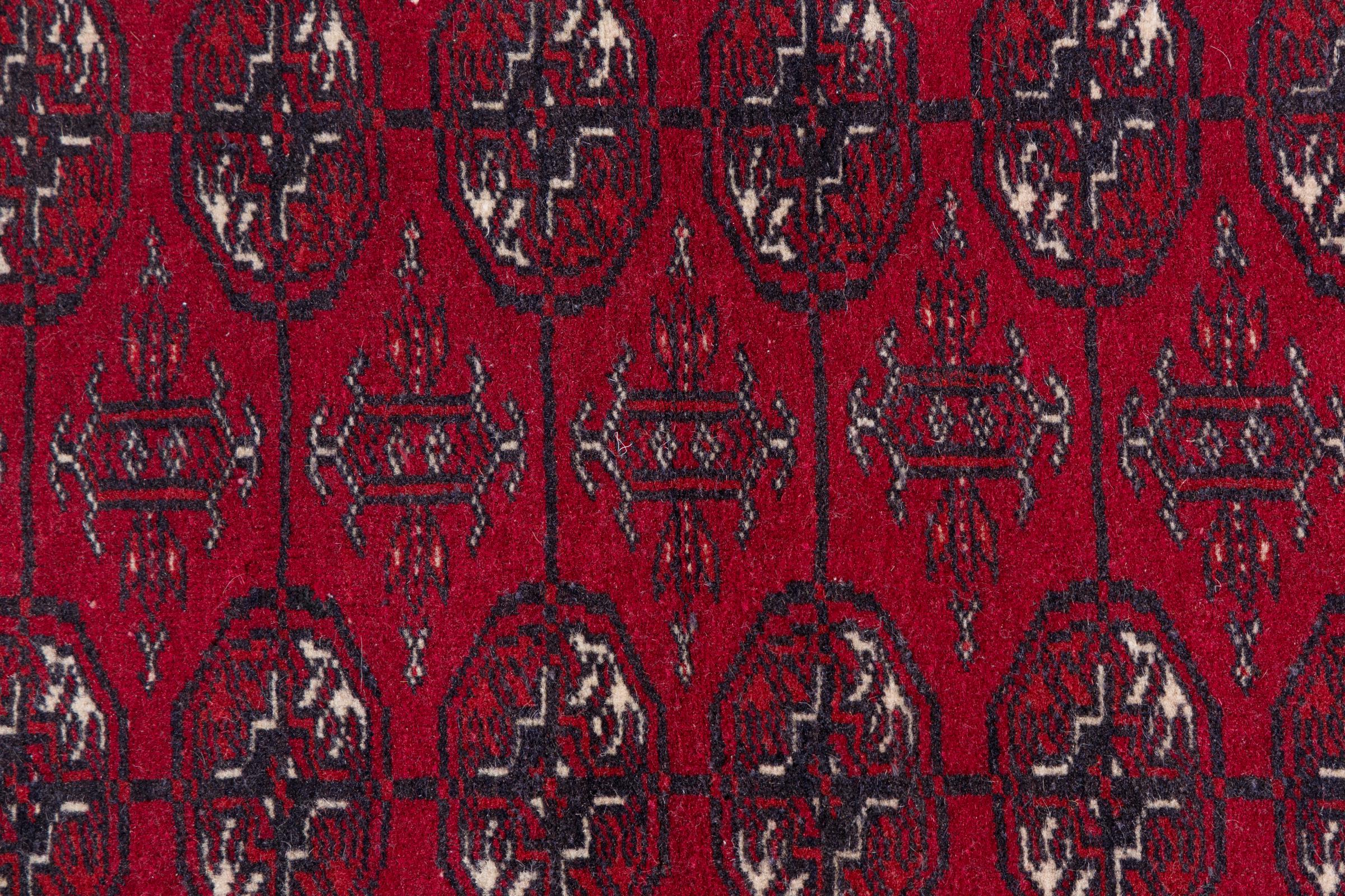 Questo tappeto Turkaman è stato annodato nel migliore artigianato e convince con il suo alto standard di produzione e la lana utilizzata. I suoi colori riflettono la cultura dei turkmeni e danno al tuo ambiente un fantastico tocco d'Oriente.