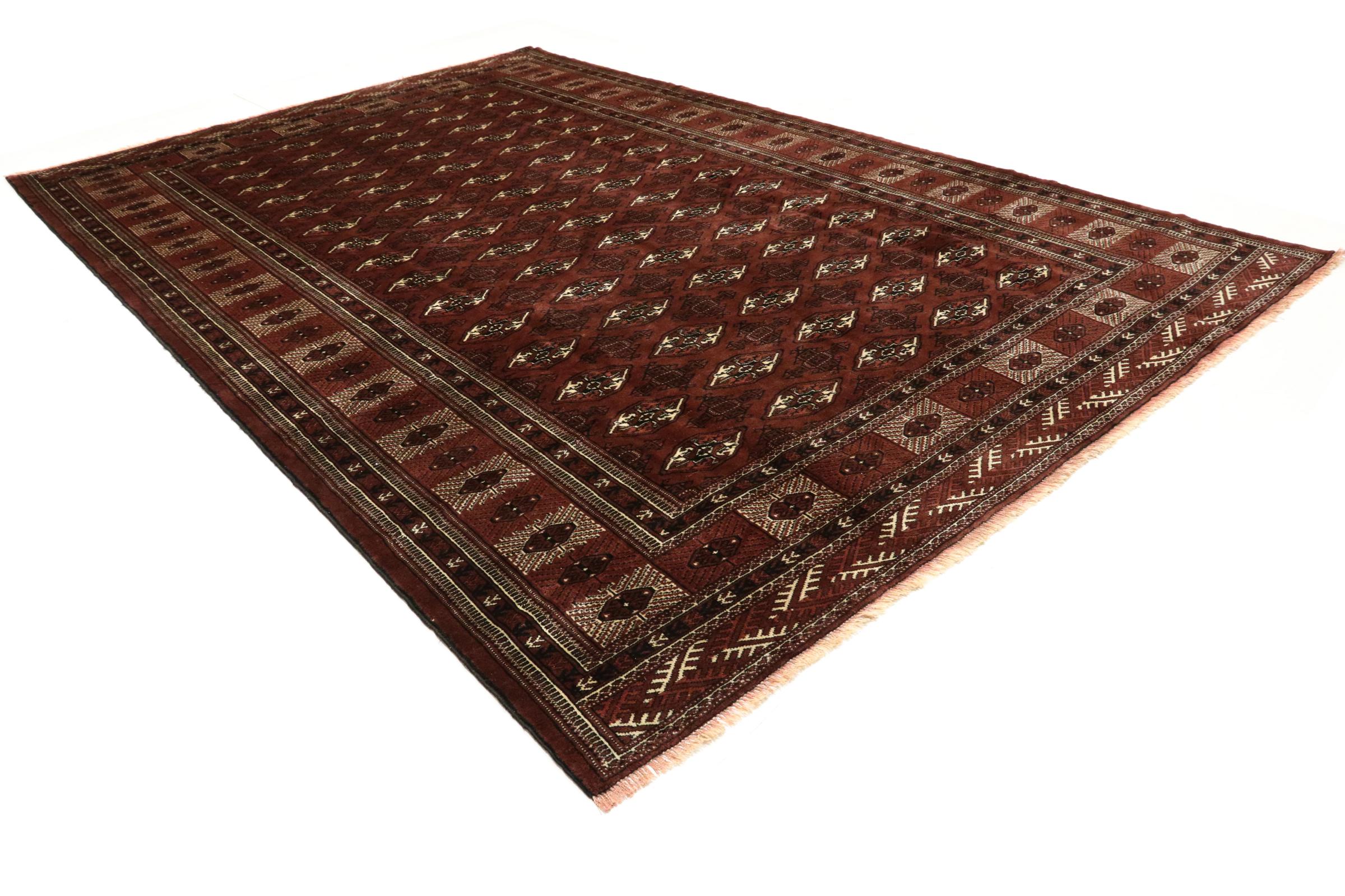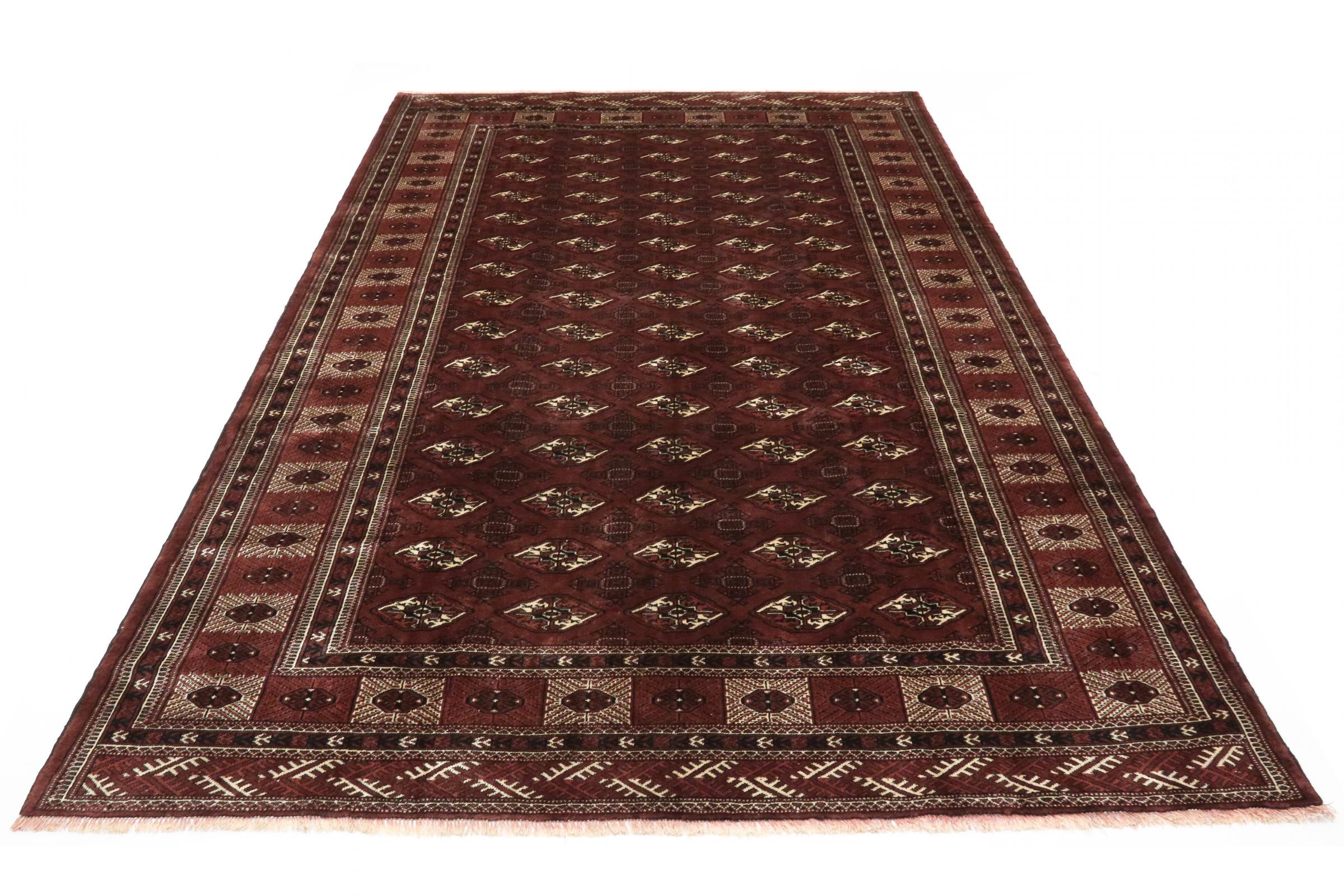 Questo tappeto Turkaman è stato annodato nel migliore artigianato e convince con il suo alto standard di produzione e la lana utilizzata. I suoi colori riflettono la cultura dei turkmeni e danno al tuo ambiente un fantastico tocco d'Oriente.