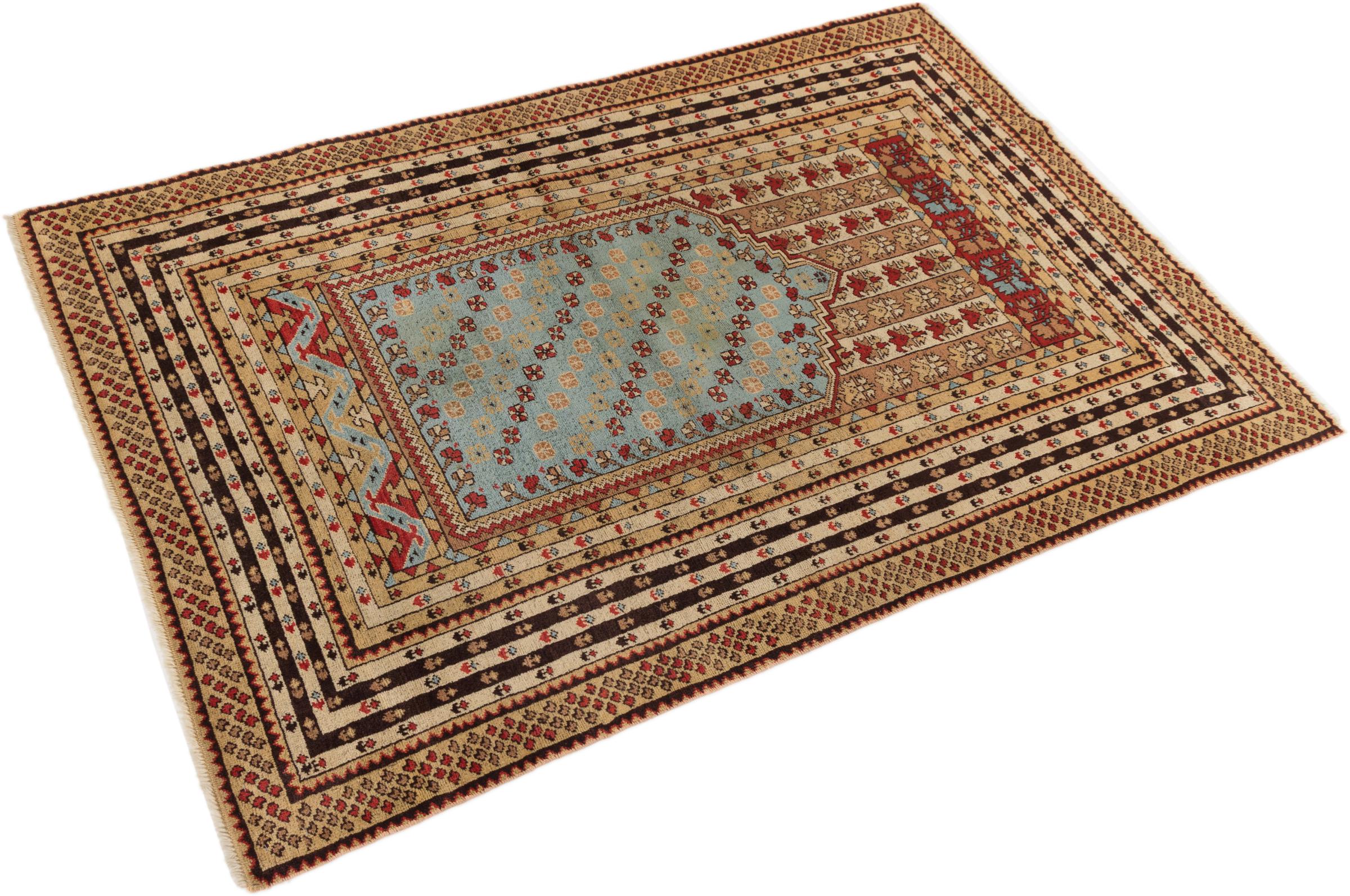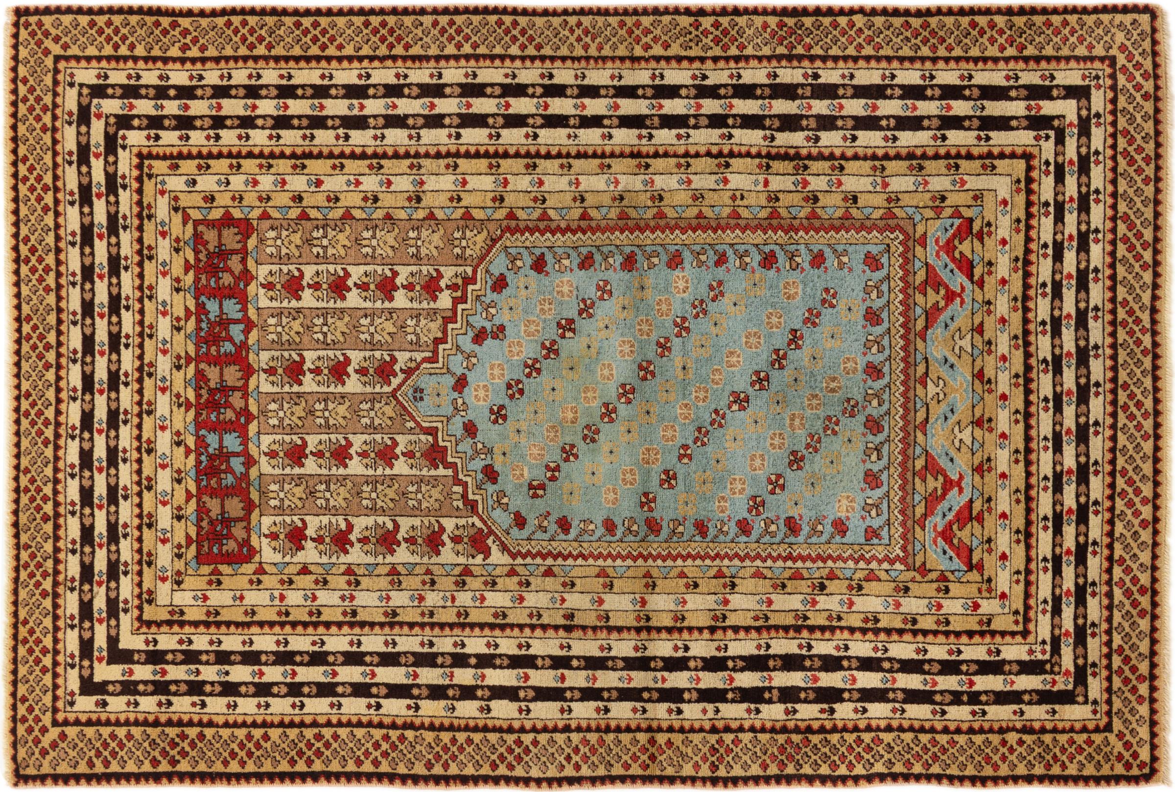 Tappeto-N.: 295487008106 Dimensione: 181x122 cm Spessore: circa . 5 mm Nodi: 128 000 - 160 000 / m² Lavorazione: Annodato a mano Fondo: Lana filata a mano Catena: Lana di pecora Origine: Turchia Età: Vecchio/Semi-Antico, età più di 50 Anni Peso: circa . 8 kg Disponibile: Unico - Solo 1 disponibili