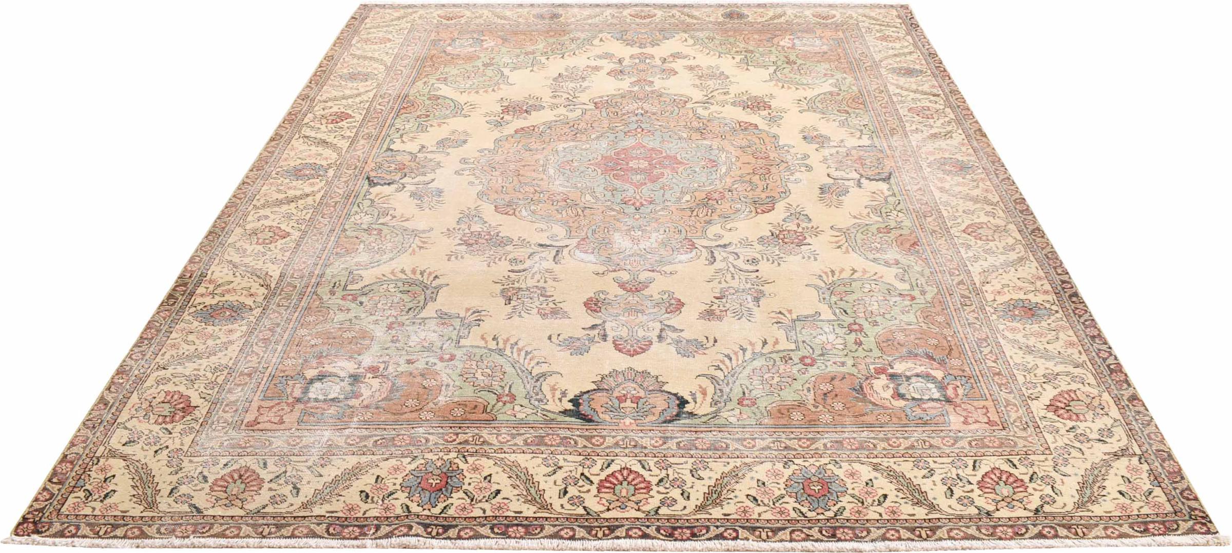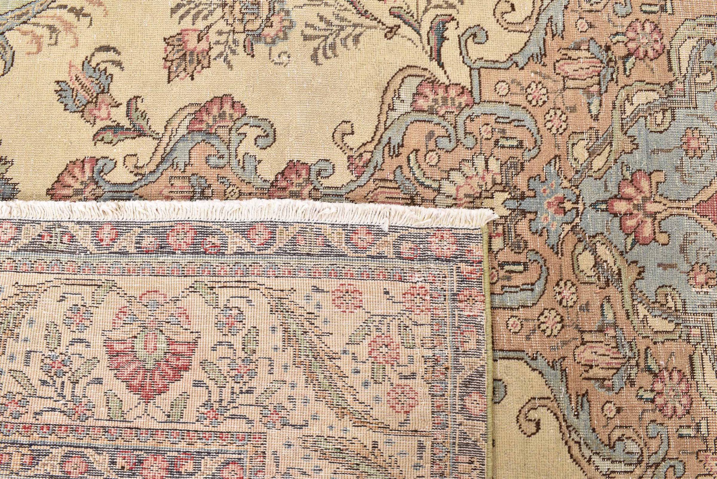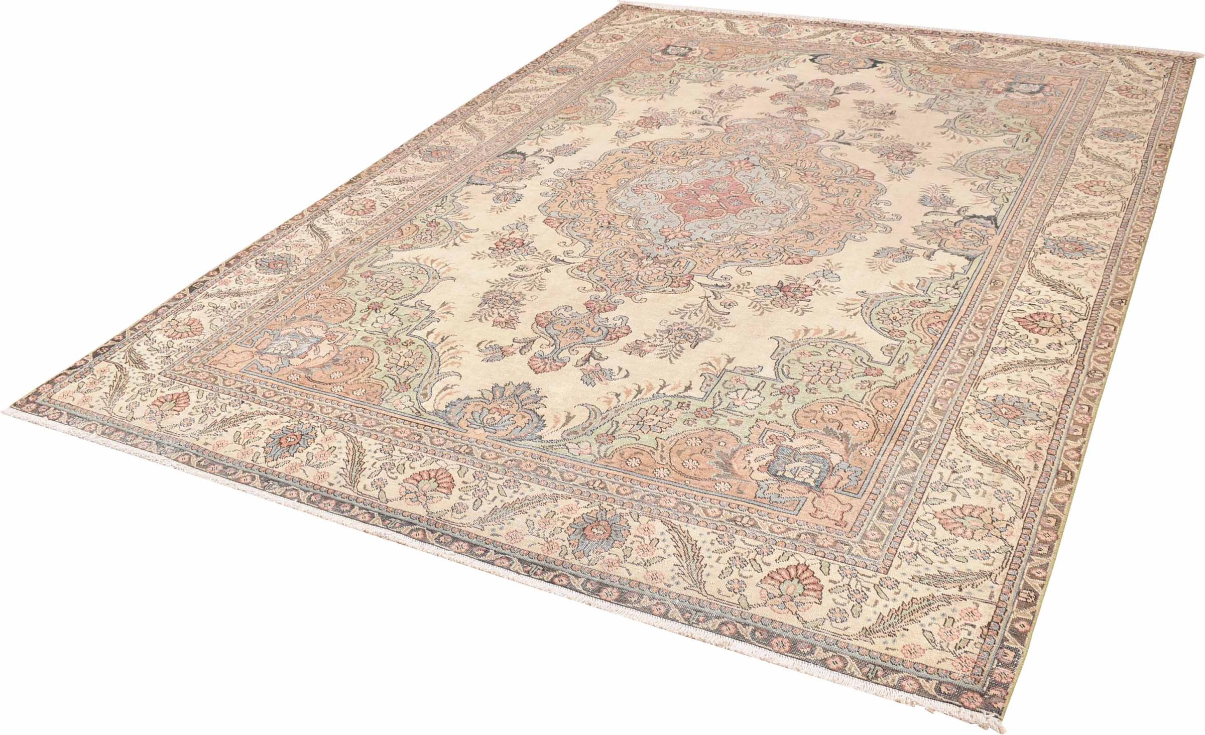 Tappeto-N.: 309919001907268 Dimensione: 327x231 cm Spessore: circa . 5 mm Nodi: 160 000 - 200 000 / m² Lavorazione: Annodato a mano Fondo: Lana filata a mano Catena: Cotone Origine: Persia / Iran Età: Vecchio, circa. 30-50 Anni Peso: circa . 26 kg Disponibile: Unico - Solo 1 disponibili