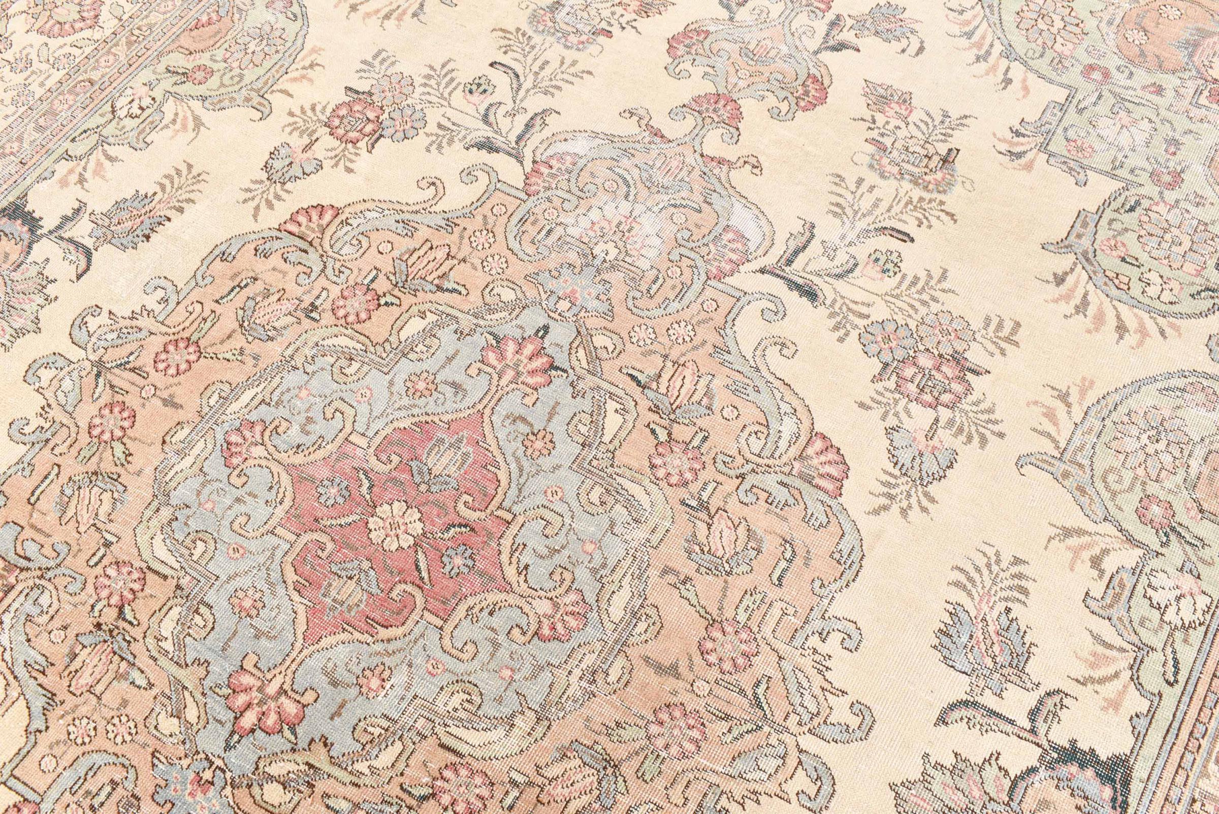 Questi tappeti d'epoca sono antichi tappeti orientali annodati a mano, per lo più tappeti persiani. Un tappeto di questo tipo durerà per tutta la vita. I tappeti sono di solito scoloriti e il vello di lana è ridotto a un livello. Questo conferisce al tappeto un aspetto uniforme e uno stile vintage senza tempo. Solo i tappeti annodati a mano di alta qualità e senza danni sono realizzati come tappeti d'epoca.