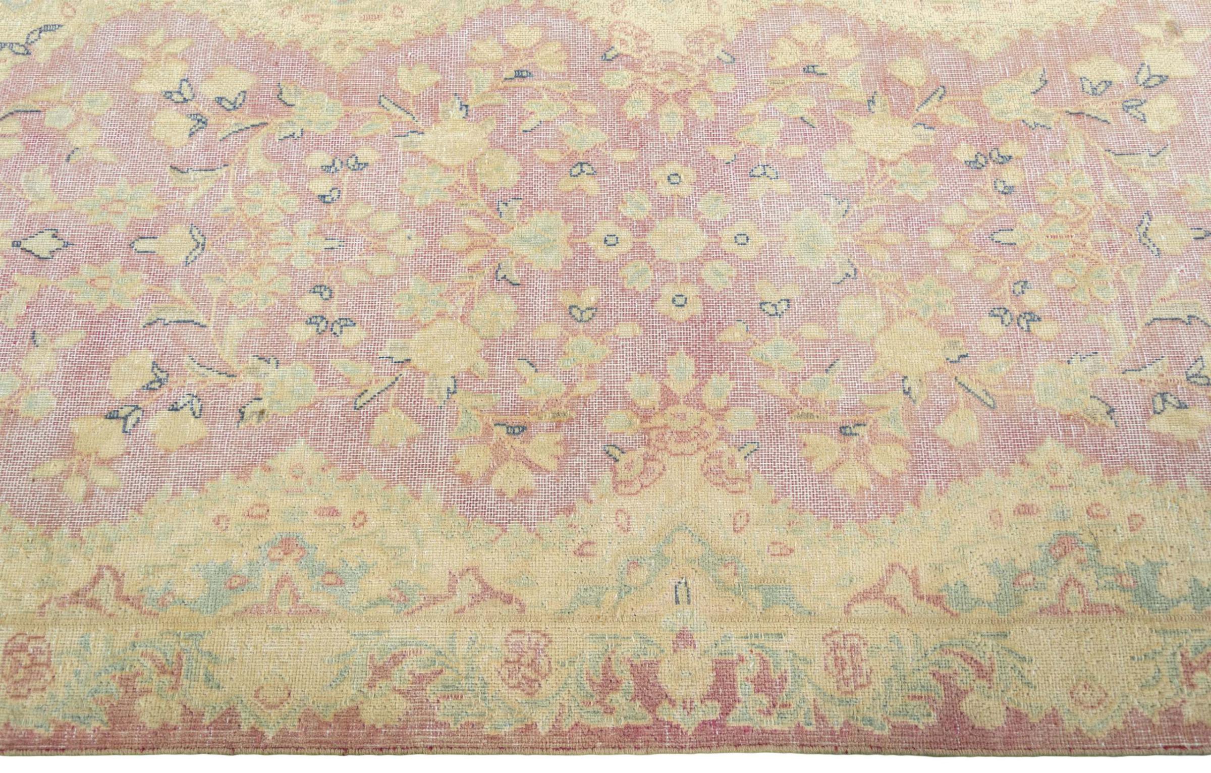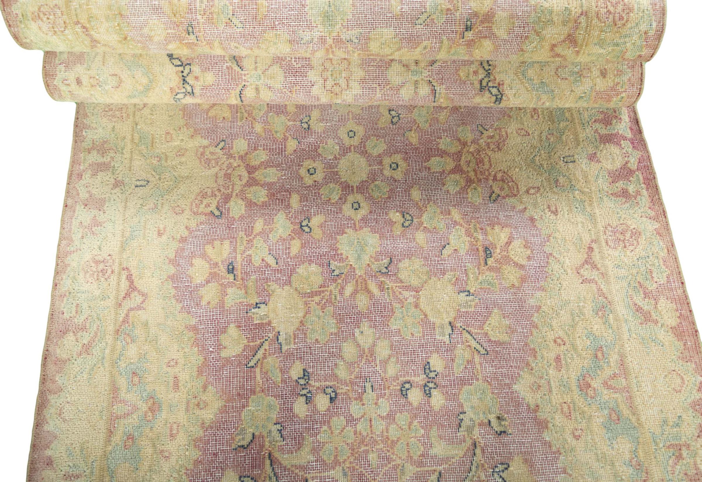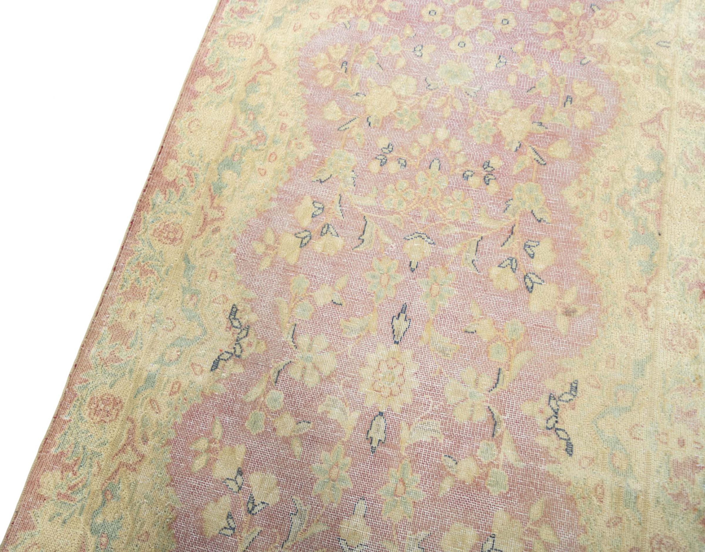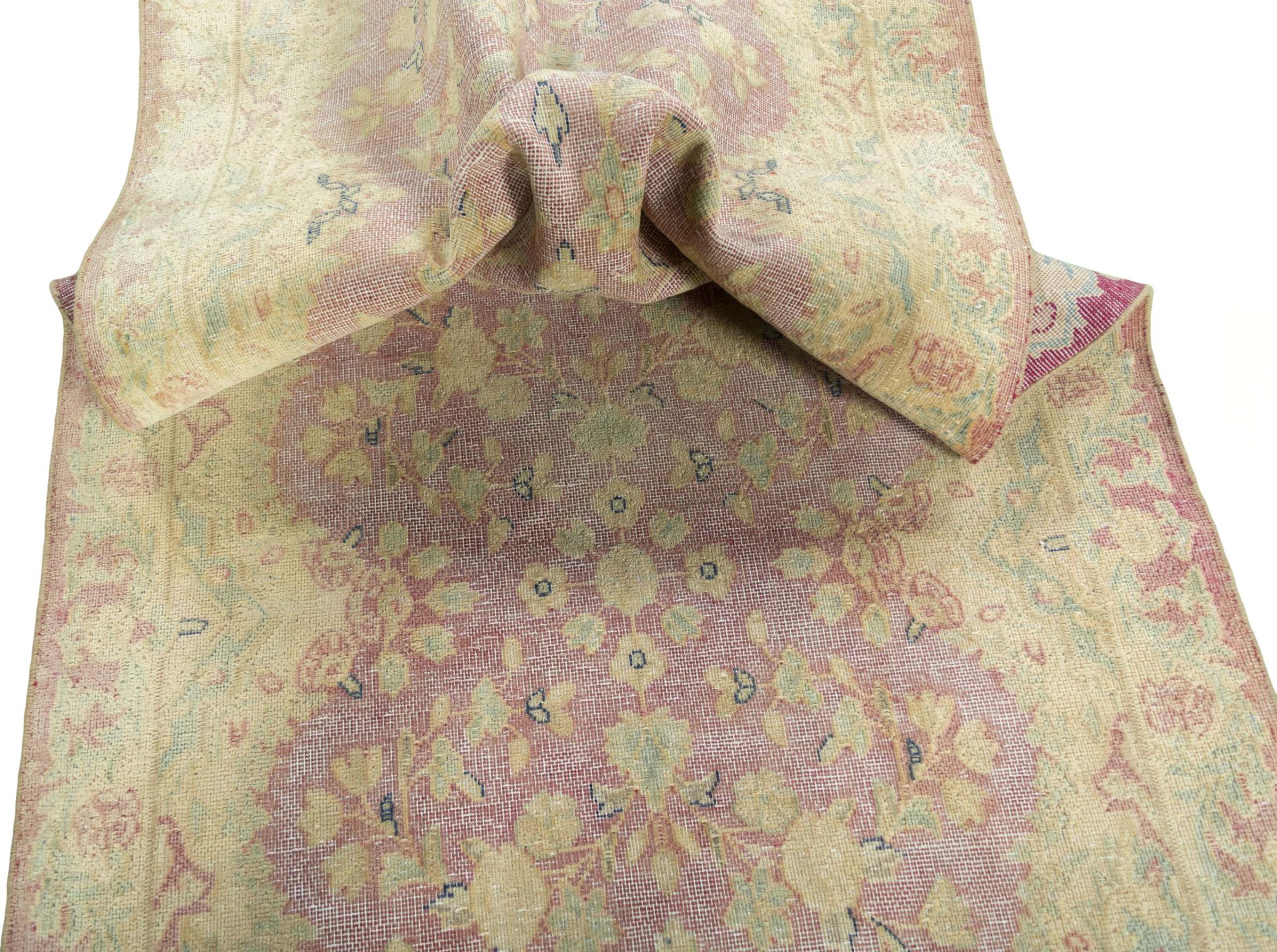 Questo è un tappeto persiano annodato a mano che ha almeno 20 anni. Con la giusta cura, un tappeto di questo tipo può durare per generazioni. Il tappeto è stato completamente tinto di nuovo senza sovraccaricare gli ornamenti annodati in origine. Questo conferisce al tappeto persiano di alta qualità un carattere vintage moderno e unico.