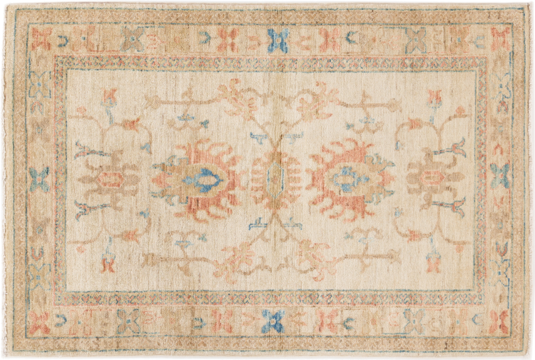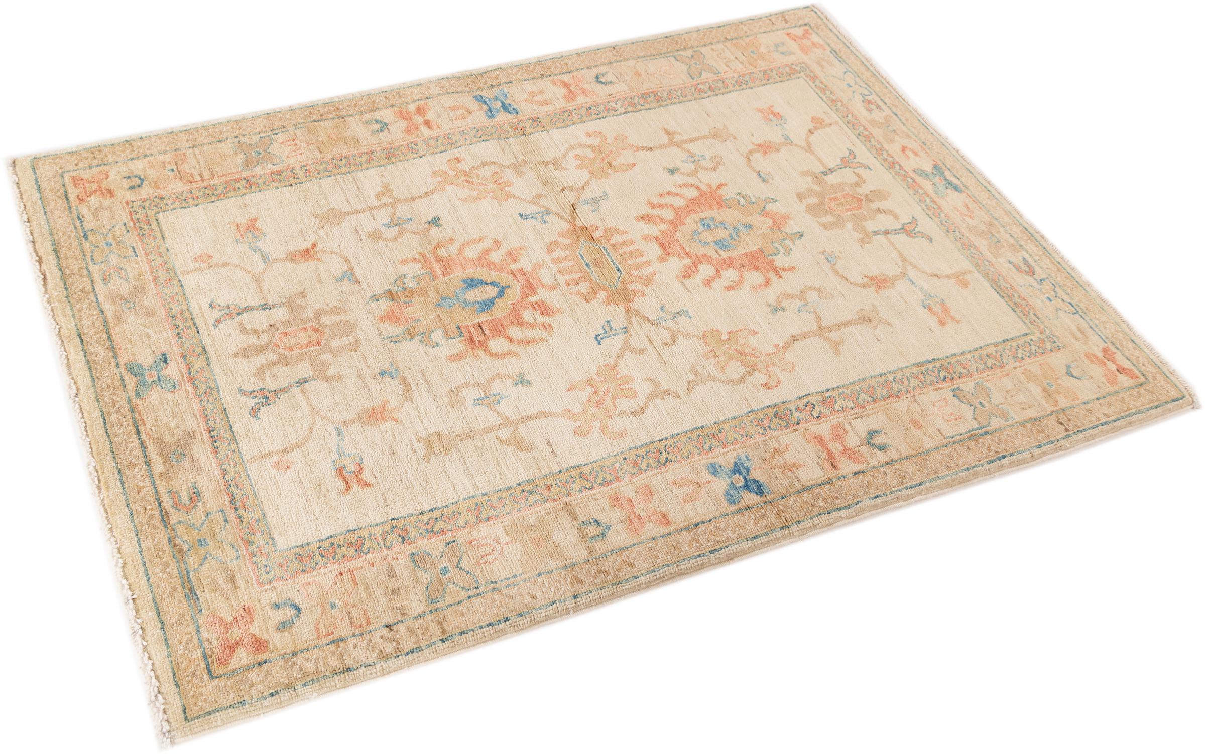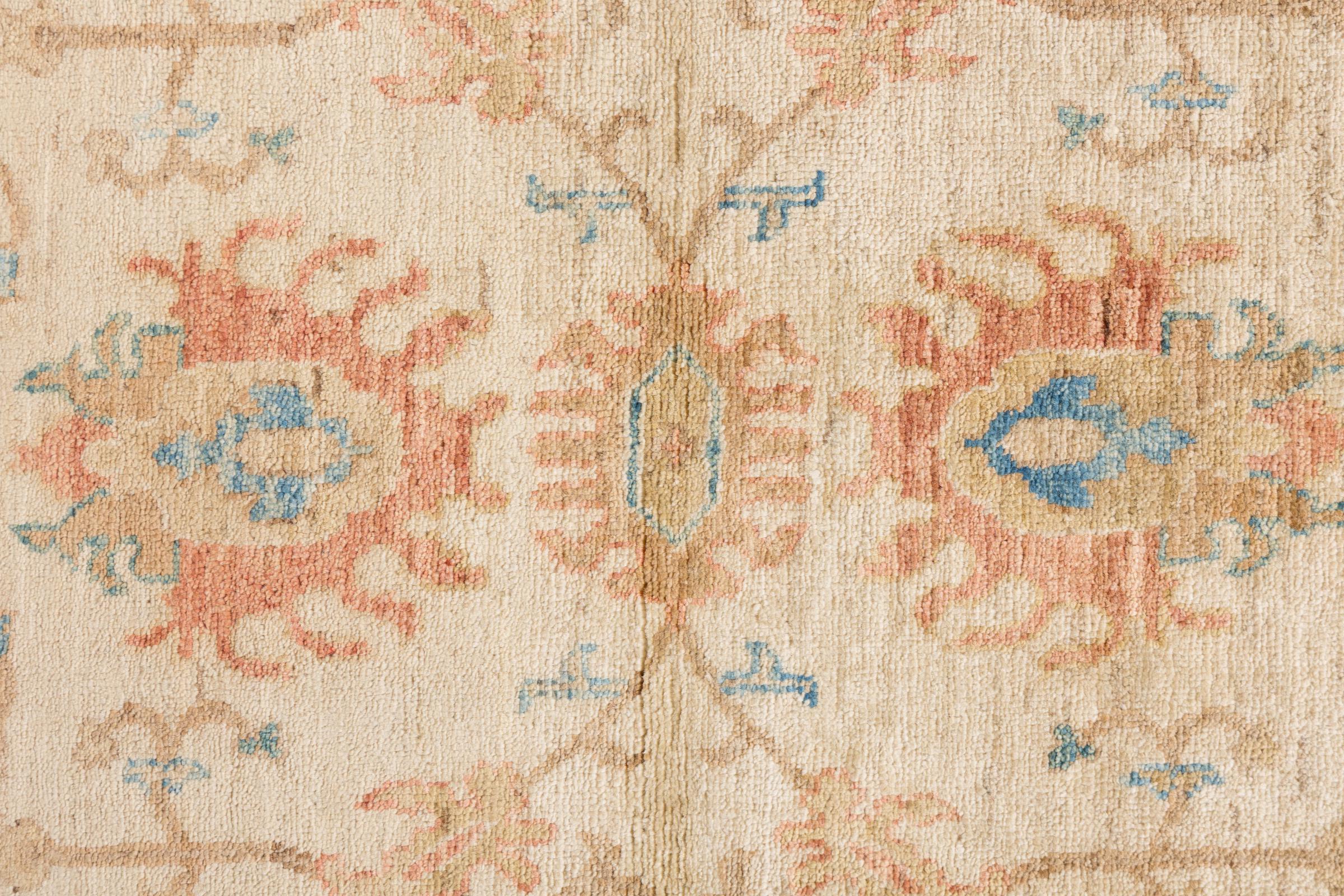Questo Ziegler Farahan è realizzato con lana di alta qualità e annodatura manuale in Pakistan. I speciali metodi di trattamento creano una bella e moderna patina vintage, che appare molto moderna grazie ai colori tenui.