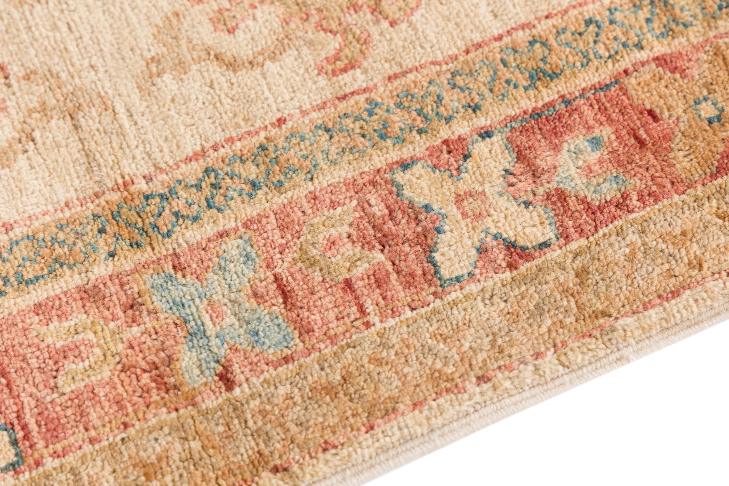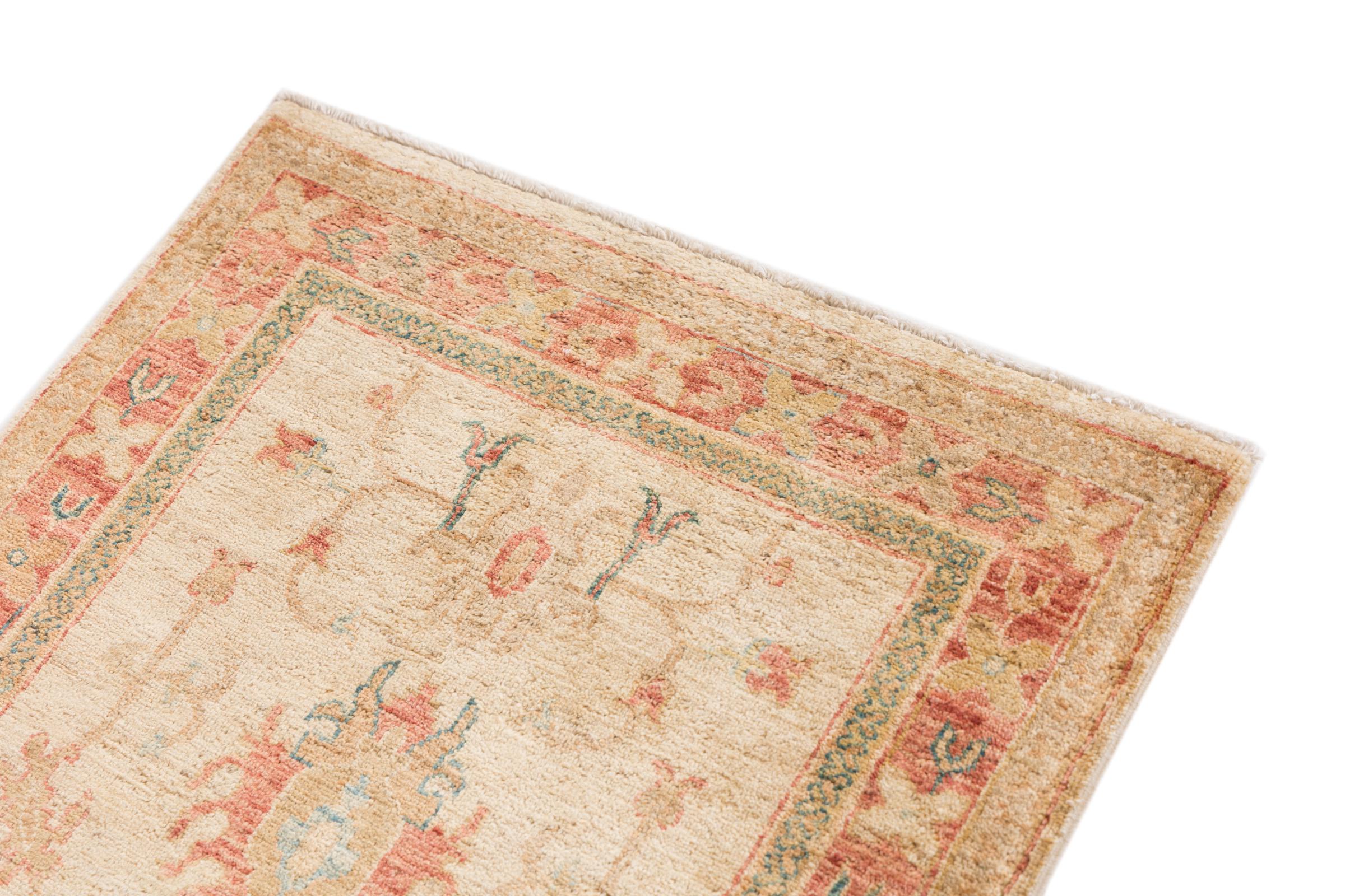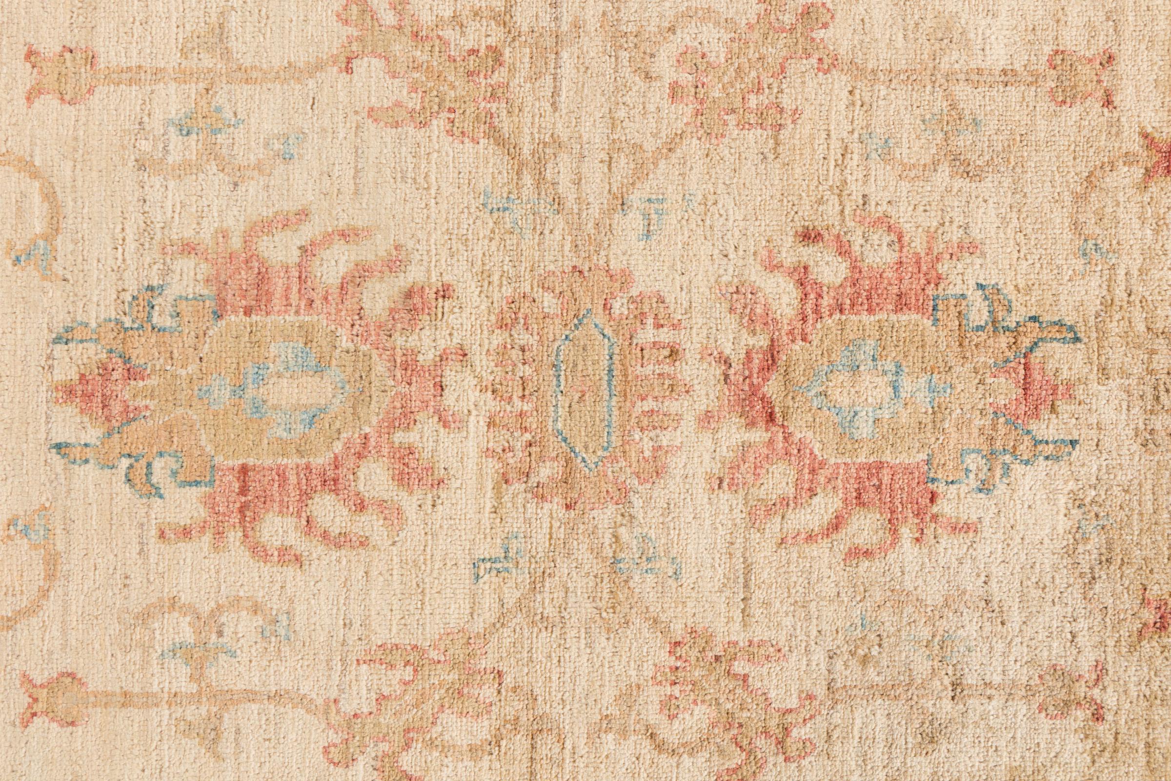 Questo Ziegler Farahan è realizzato con lana di alta qualità e annodatura manuale in Pakistan. I speciali metodi di trattamento creano una bella e moderna patina vintage, che appare molto moderna grazie ai colori tenui.