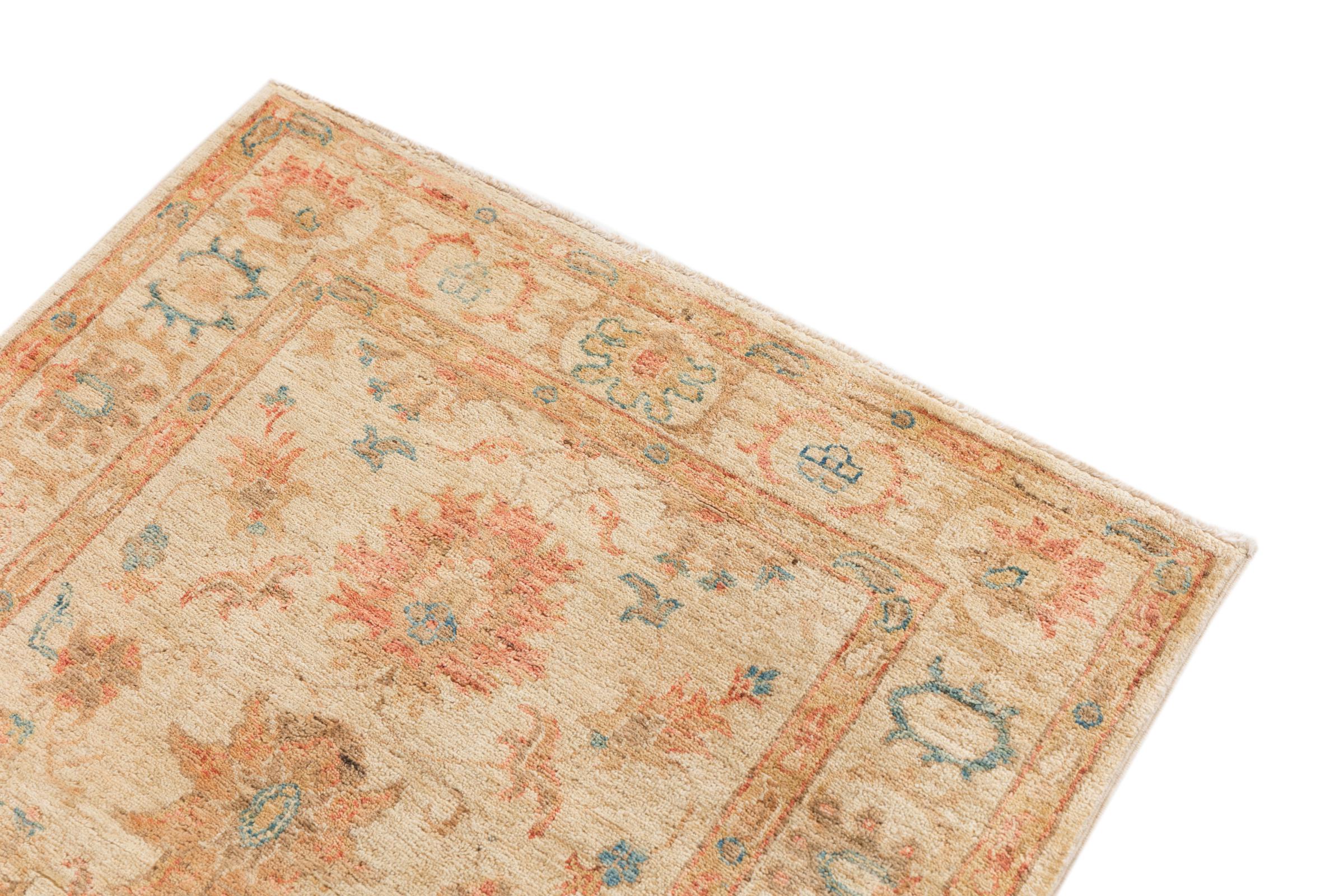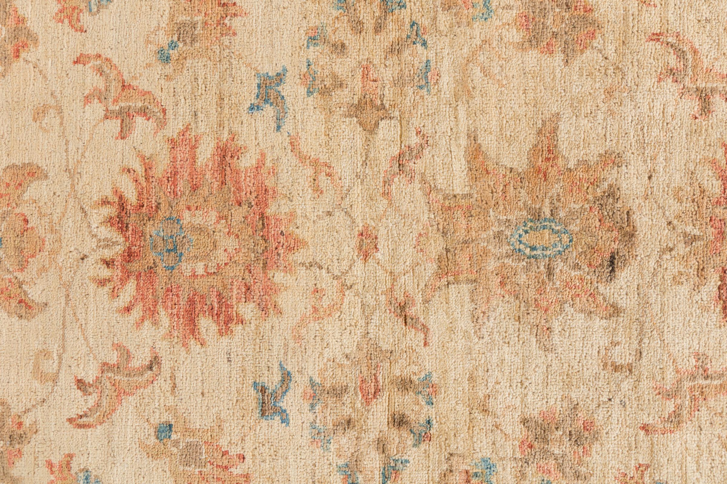 Questo Ziegler Farahan è realizzato con lana di alta qualità e annodatura manuale in Pakistan. I speciali metodi di trattamento creano una bella e moderna patina vintage, che appare molto moderna grazie ai colori tenui.