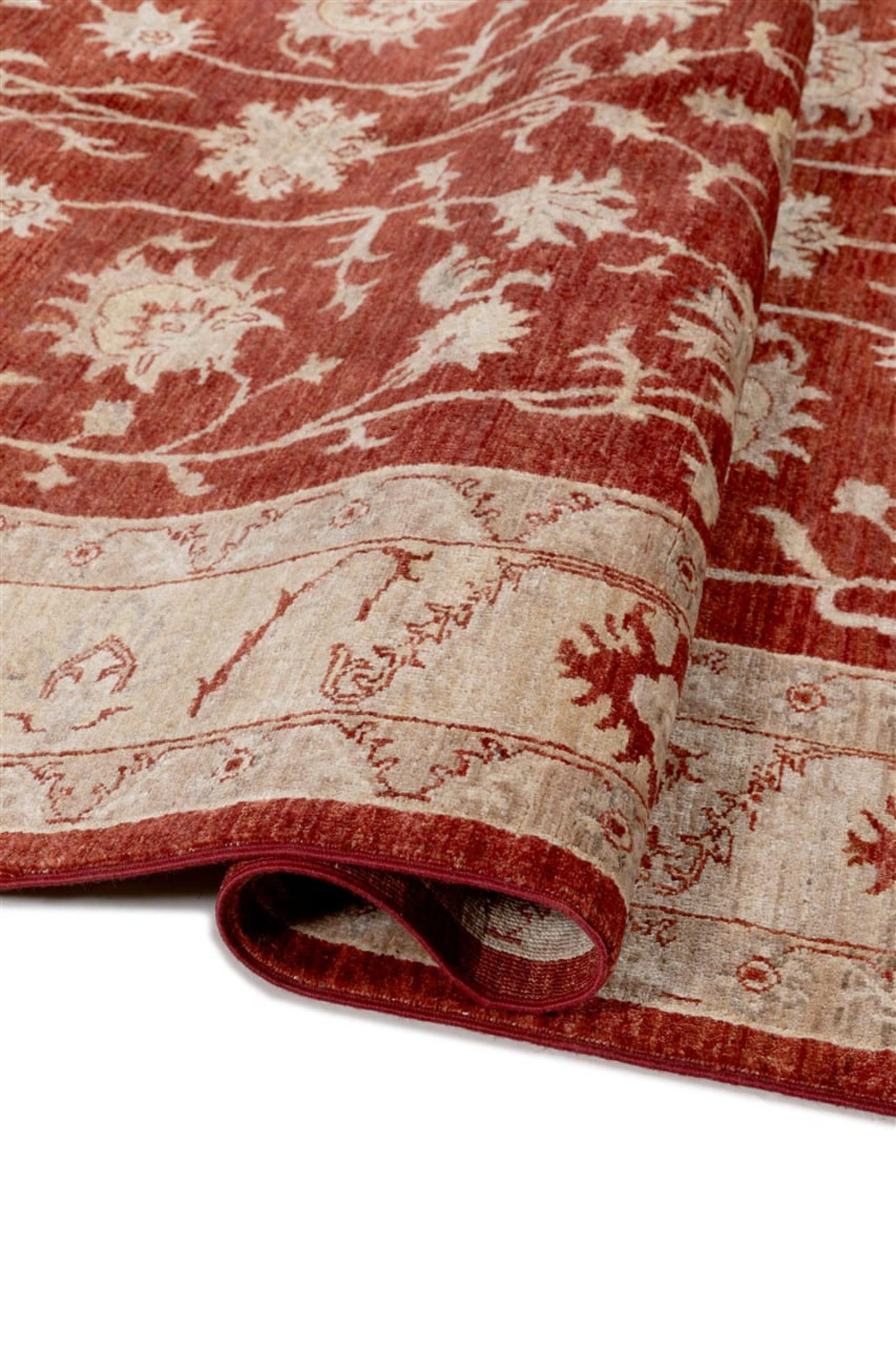 Questo tappeto è realizzato in lana di pecora filata a mano di altissima qualità. Soprattutto in Iran (ex Persia), Afghanistan e Pakistan la lana viene ancora filata a mano prima che inizi l'annodatura vera e propria del tappeto. La lana si è dimostrata nei secoli un materiale naturale ed estremamente resistente. Tra le altre cose, ha proprietà di repellenza allo sporco e di isolamento termico. Allo stesso tempo, la lana è incomparabilmente morbida e ha una lucentezza naturale.