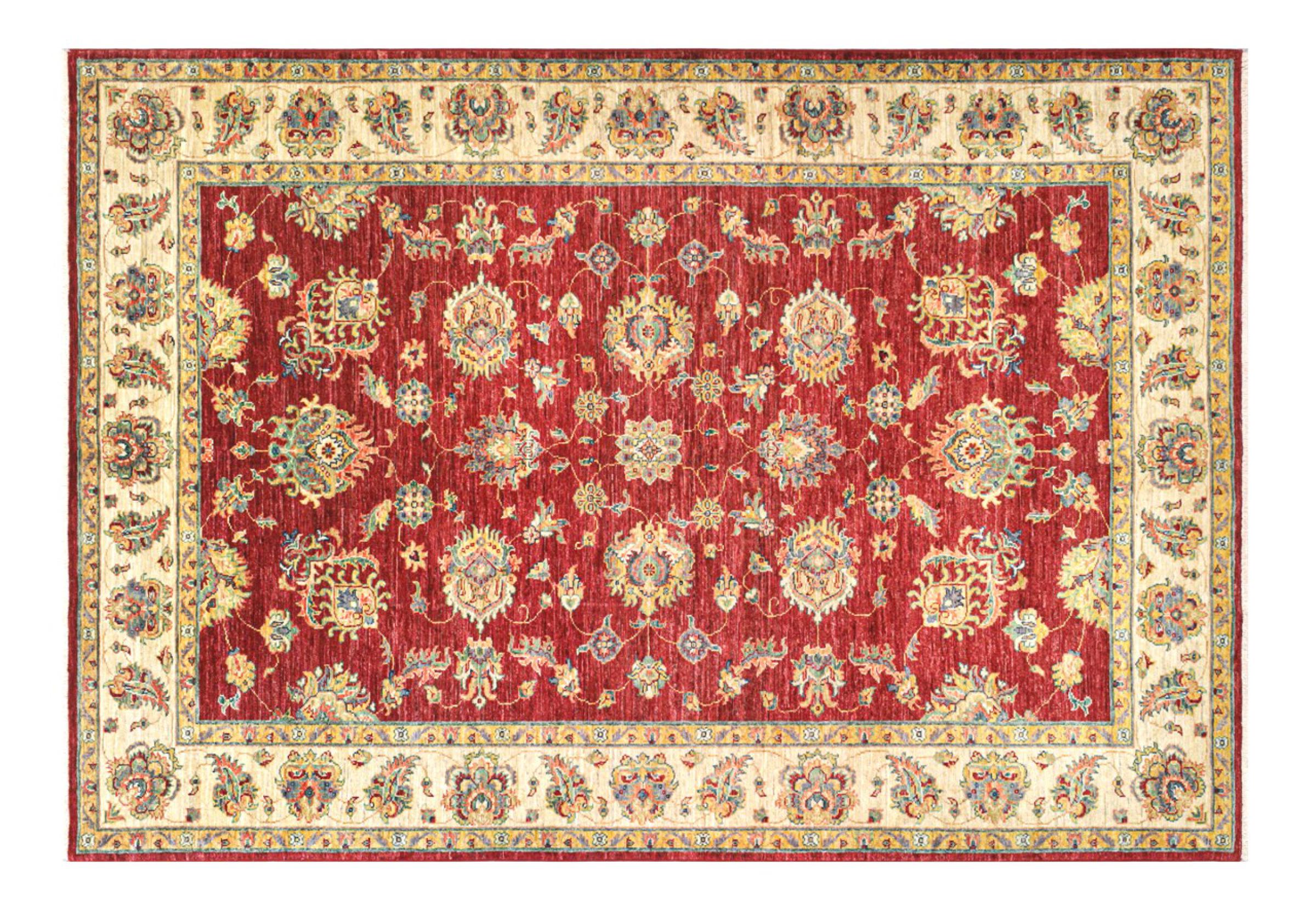 Questo tappeto è realizzato in lana di pecora filata a mano di altissima qualità. Soprattutto in Iran (ex Persia), Afghanistan e Pakistan la lana viene ancora filata a mano prima che inizi l'annodatura vera e propria del tappeto. La lana si è dimostrata nei secoli un materiale naturale ed estremamente resistente. Tra le altre cose, ha proprietà di repellenza allo sporco e di isolamento termico. Allo stesso tempo, la lana è incomparabilmente morbida e ha una lucentezza naturale.
