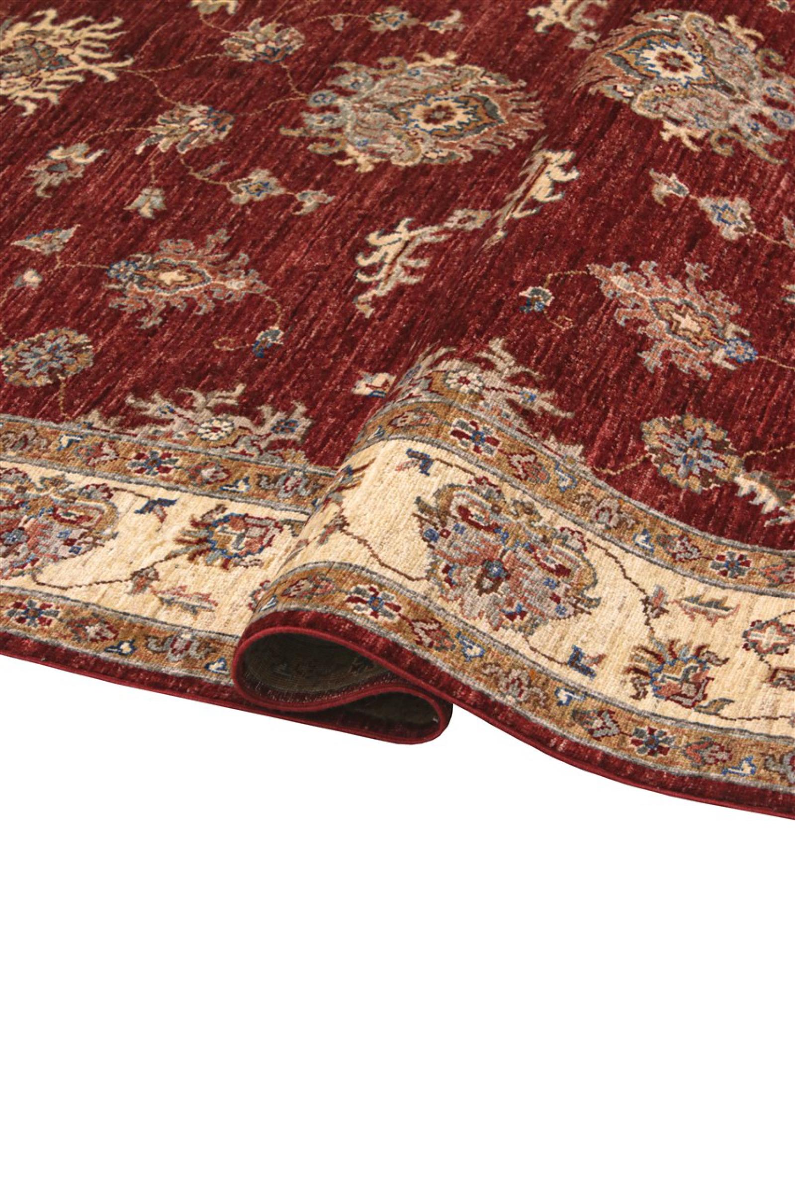 Questo tappeto è realizzato in lana di pecora filata a mano di altissima qualità. Soprattutto in Iran (ex Persia), Afghanistan e Pakistan la lana viene ancora filata a mano prima che inizi l'annodatura vera e propria del tappeto. La lana si è dimostrata nei secoli un materiale naturale ed estremamente resistente. Tra le altre cose, ha proprietà di repellenza allo sporco e di isolamento termico. Allo stesso tempo, la lana è incomparabilmente morbida e ha una lucentezza naturale.