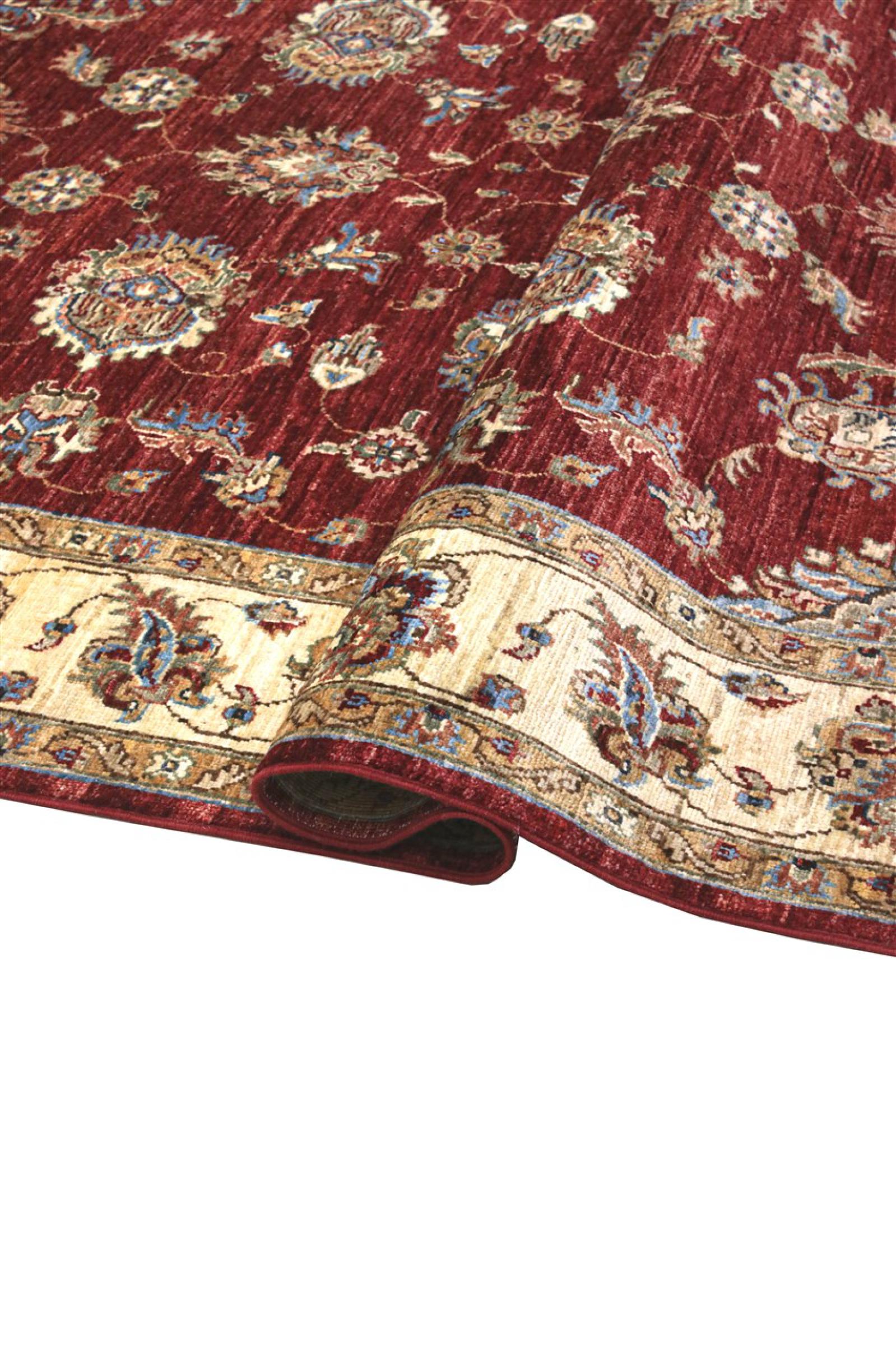 Questo tappeto è realizzato in lana di pecora filata a mano di altissima qualità. Soprattutto in Iran (ex Persia), Afghanistan e Pakistan la lana viene ancora filata a mano prima che inizi l'annodatura vera e propria del tappeto. La lana si è dimostrata nei secoli un materiale naturale ed estremamente resistente. Tra le altre cose, ha proprietà di repellenza allo sporco e di isolamento termico. Allo stesso tempo, la lana è incomparabilmente morbida e ha una lucentezza naturale.